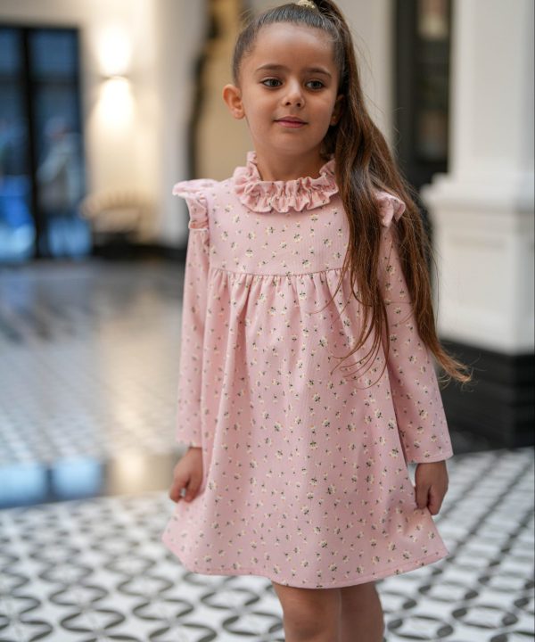 پیراهن مخمل کبریتی گلدار صورتی