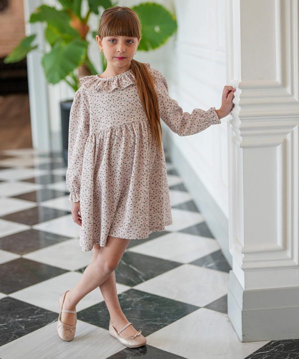 پیراهن مخمل کبریتی گلدار کرم