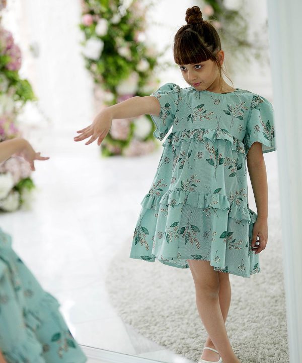 پیراهن آبرنگی دامن سه طبقه